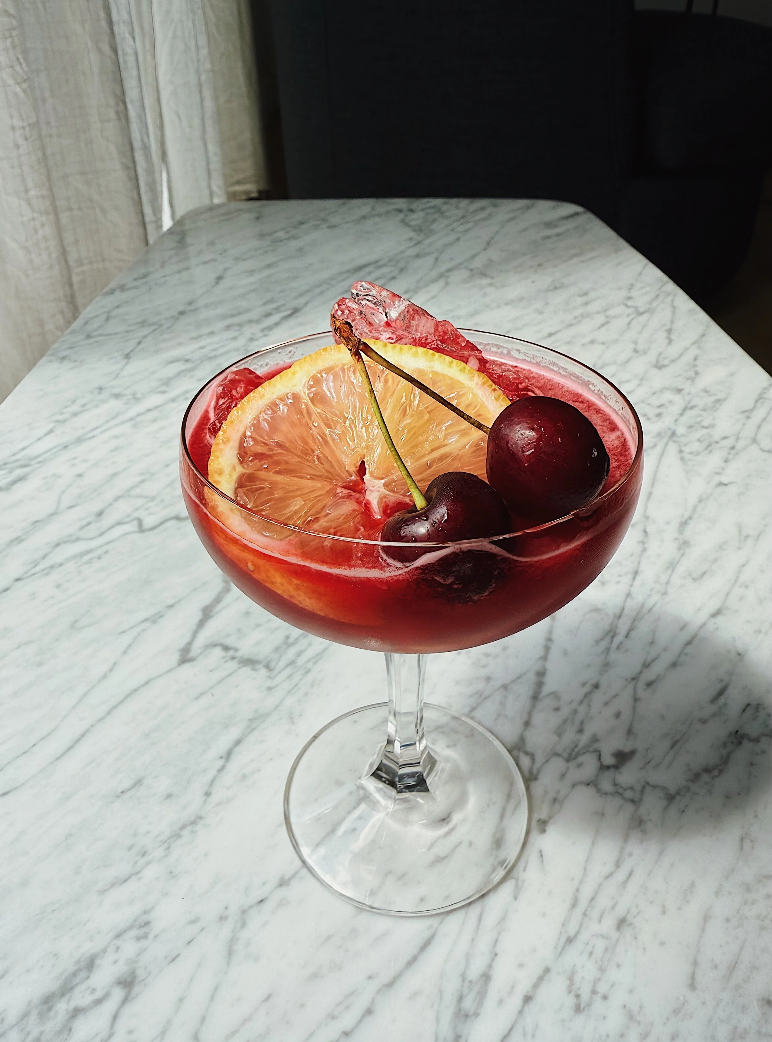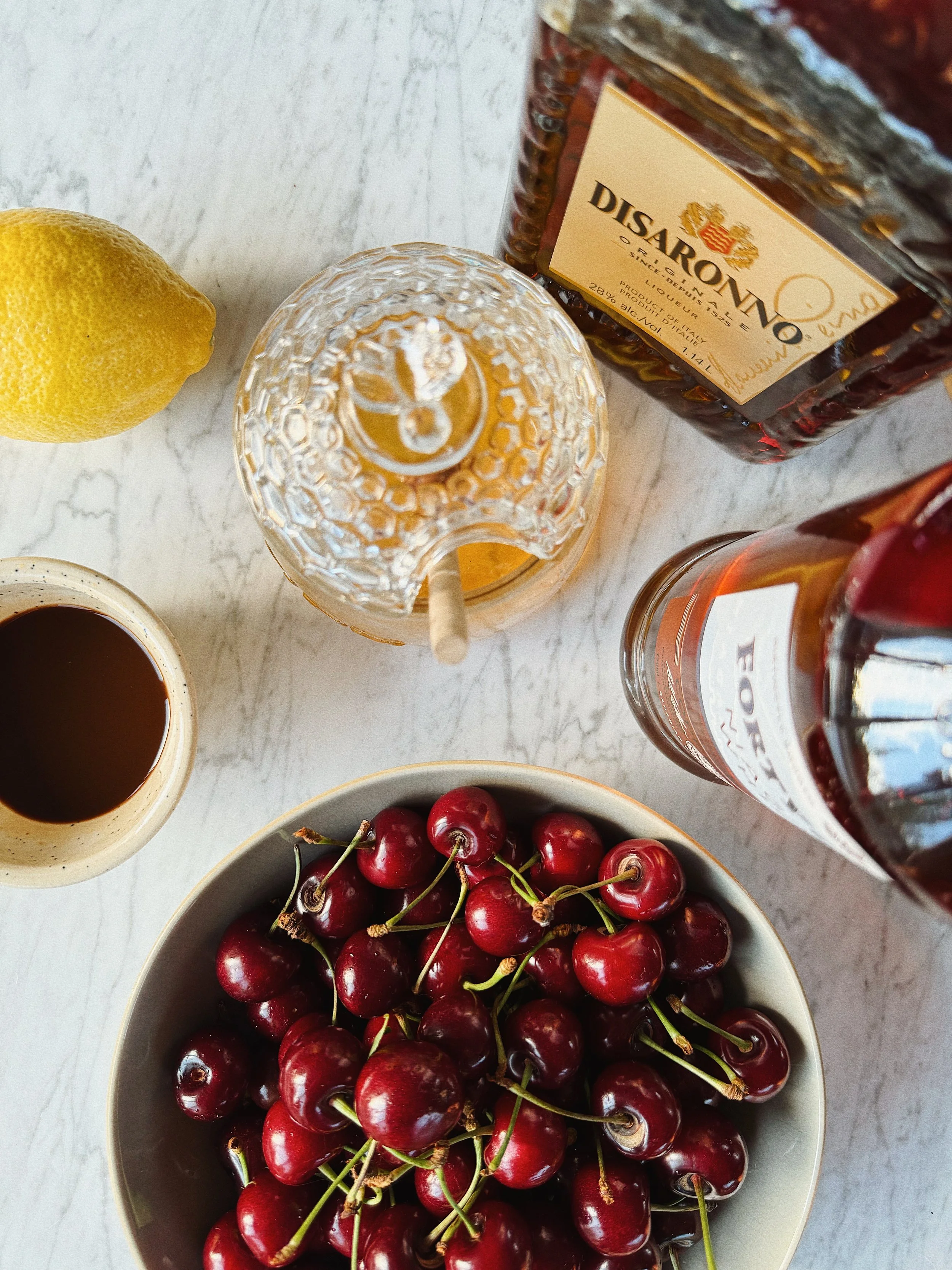 Garnish: lemon slice + fresh cherries